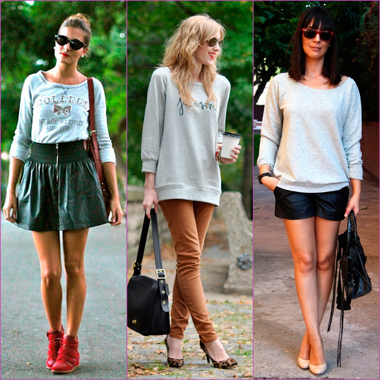Y para las que dudaban que con una sudadera o suéter  de algodón se podía ir de lo más sofisticada y ultra femenina (incluyéndome a mi y mi concepto de «suéter-pijama»), no se pierdan estas combinaciones pues estoy segura que no se podrán resistir a algunos de estos looks.